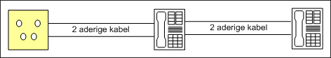 Voor de opstelling is het dus handig de splitter direct tussen de telefoondraad te plaatsen, voor het eerste toestel, en van daar een 2 aderige kabel te leggen naar de plek waar de computers staan.